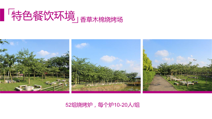 基地內(nèi)共擁有東方普羅旺斯廣場、羅馬廣場等大型活動場地,在香草基地內(nèi)有近百畝的(11月開放直至次年3月)薰衣草基地、玫瑰花基地等?;?fù)碛?30多個床位,全部位于玫瑰花園里,基地餐廳能同事容納1000多人就餐,是企事業(yè)單位進(jìn)行拓展培訓(xùn)、會議、年會、休閑度假的理想場所。